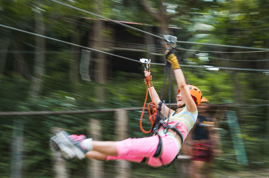 Beim Ziplining gleiten Sie über die Baumkronen hinweg und genießen spektakuläre Aussichten auf das dichte Grün des Dschungels.