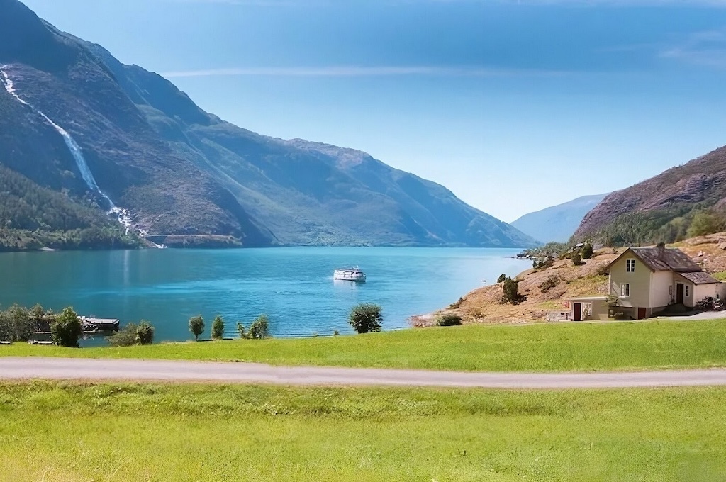 Weiter geht es entlang des beeindruckenden Åkrafjords, der mit seinen steilen Berghängen und tiefblauem Wasser zu den schönsten Fjordlandschaften Norwegens zählt.